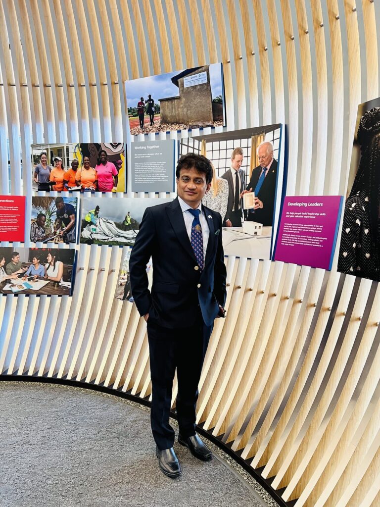 He has served Rotary International as the Assistant Governor (2023–24) for District 3271 and is the Charter President of the Rotary Club of Karachi Blues, contributing to youth development and community service.